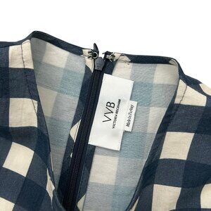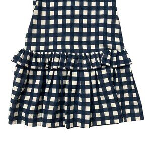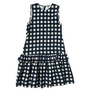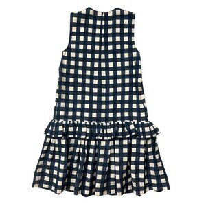 Victoria Beckham Gingham Drop Waist Ruffle Crepe Dress Blue White Sz 4 Coquette