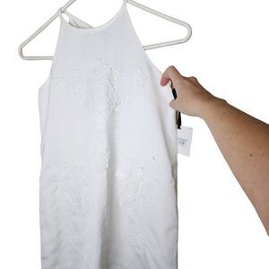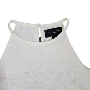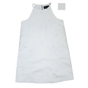Victoria Beckham Halter Neck Silky Mini Dress Floral Applique Women Size M White