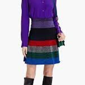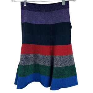 Victoria Beckham NWT Metallic Striped Cotton Blend Pull-On Mini Skirt Size XS
