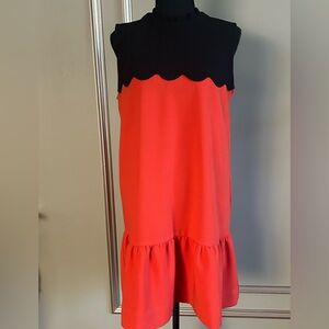 Victoria Beckham dress, Victoria Beckham for Target women’s dress, scalloped colorblock shift, orange and black dress, sleeveless shift dress, designer Target collaboration, retro mod mini dress, work to evening dress, chic office outfit, polished cocktail look, Victoria Beckham Target collection medium, women’s colorblock dress M, modern minimalist dress, business casual style, classy dress