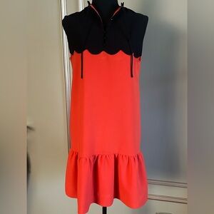 Victoria Beckham Orange Black Scalloped Colorblock Shift Dress Size Medium