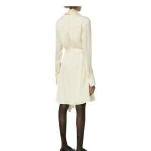 Satin-jacquard, self-tie belt, long sleeves, buttoned cuffs.