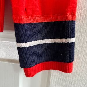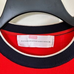 Victoria Beckham Red Blue White Crew Neck Sweater Trim Stripe Longsleeve Top