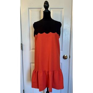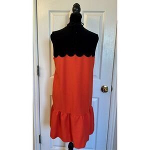 Victoria Beckham Women's Orange Drop Waist Scallop Trim Black Dress Size Small