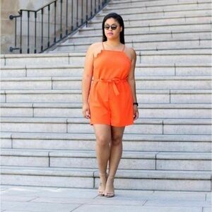 Victoria Beckham Women's Orange Scallop Tie Waist Romper Size 1X