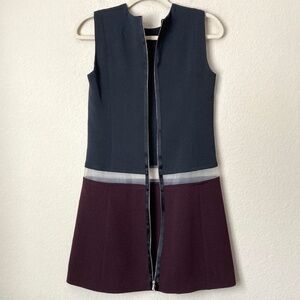 Victoria Beckham Wool Silk Blend Colorblock Mesh Illusion Contemporary Dress