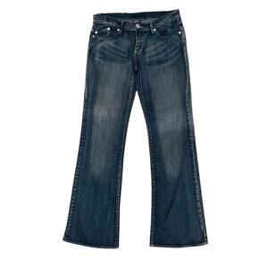 ROCK AND REPUBLIC By Victoria Beckham Stylish distressed bootcut jeans with elegant crown embroidery on back pockets. Perfect for a chic casual look.