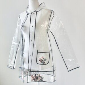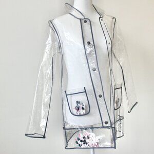 This clear girl's raincoat with shake-able fabric flowers sewn inside from Victoria Beckham in size Extra Large is adorable!