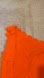 Bright orange dress with scalloped edges. Features a bow detail at the neckline. Perfect for a bold statement.