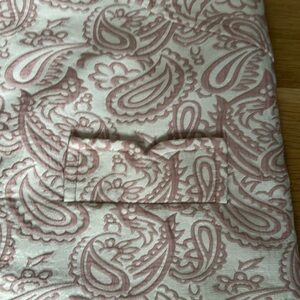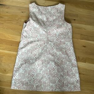 Elegant sleeveless dress with paisley pattern. Features a soft pink and white color scheme. Perfect for casual or formal occasions.