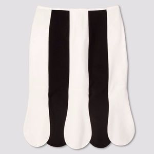 Black and white alternating panels with a scallop effect with hem. Mid rise waist, fully lined Hidden side zipper No pockets. Slight stretch, but not enough to rely upon it. Looks amazing dressed up or down, and the scallop effect comes to life when walking. This skirt is consistent with Target's size chart. NWT. Reasonable offers considered :)
