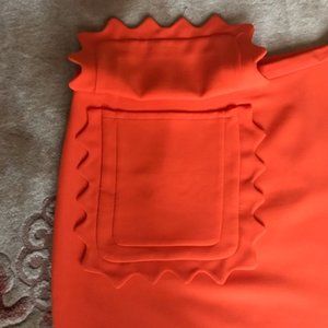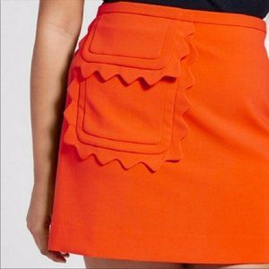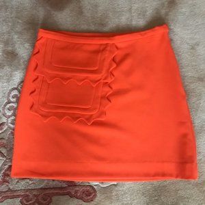 Retro looking A-line mini skirt in bright orange by Victoria Beckham for Target. It has a functional oversized pocket with flap closure & scalloped edges. Side zip. Size M.