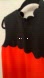 Gorgeous. Red Orange with black. Ruffle hem. Ties in the back and has a few buttons. Flowy tunic Little stretch No zipper Sleeveless. Scalloped design high neck.