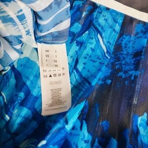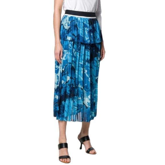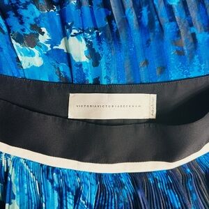 Blue landscape skirt from Victoria Victoria Beckham featuring micro pleated details, a mid-length, layered pleats with navy waist.