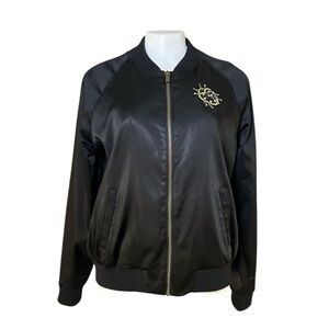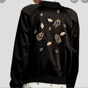 Victoria Beckham x Target Bug Bomber Jacket Black Satin Embroidered Sz S