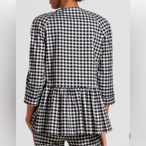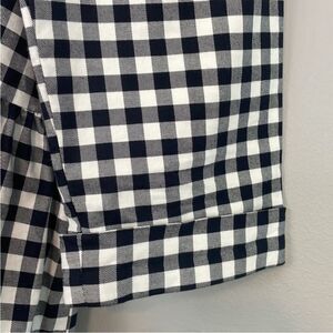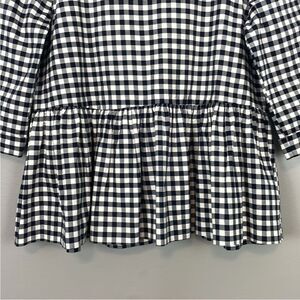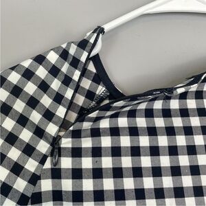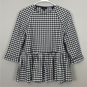 Victoria Beckham for Target Navy Blue and White checkered/gingham peplum blouse. Size Small. In very good preowned condition. No stains. 3/4 length sleeves. Zipper on back of left shoulder. Armpit to pit measures 20 inches. Top of shoulder down 25 inches. Comes from a smoke free home.