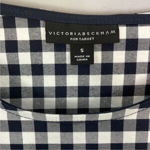 Victoria Beckham for Target Navy Blue and White Gingham Peplum Blouse. Size S