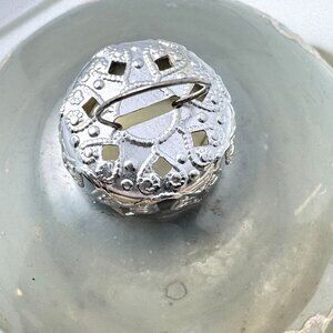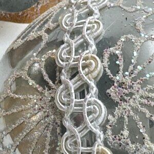 This set of four vintage glass Christmas ornaments from the Victoria Collection features intricate lace and glitter details in gold and silver tones.