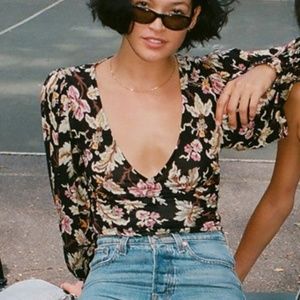 Victoria Crepe Wrap Floral Tie Boho Hipster Hippie Art Deco Farm Hip Peasant Top