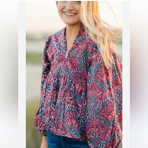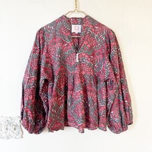 Victoria Dunn Balloon Sleeve Babydoll Boho Brownwen Blouse in Lava Falls XS