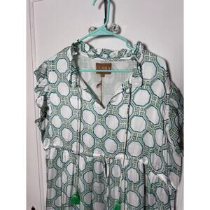 Victoria Dunn Clara the Label Blue White Classic Tiered Midi Dress Plus 2XL NEW
