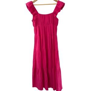 Victoria Dunn Folly Gauzy Pink Tiered Ruffled Sleeve Maxi Dress Size Medium