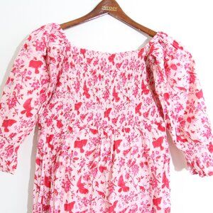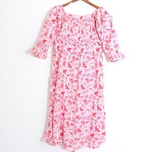 Victoria Dunn Ol' Village Songbird Midi Dress Pink Smocked Floral Cotton Large