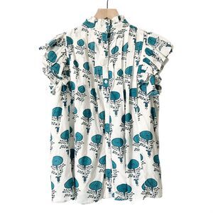 Victoria Dunn Ruffle Jasmine Blouse in Capri Blue 100% Cotton Size Small