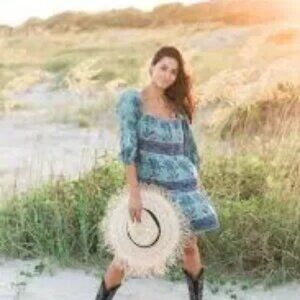 Victoria Dunn Sunflower Dress in Cornflower Green Blue Boho Medium Like New