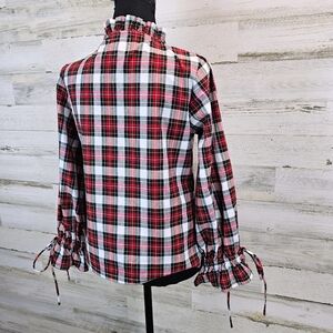 Victoria Dunn Women Plaid Ruffle Drawstring Top Small Red Preppy Coastal Cottage