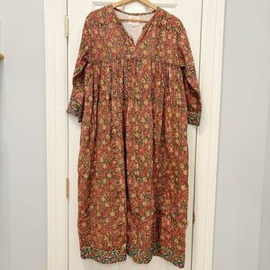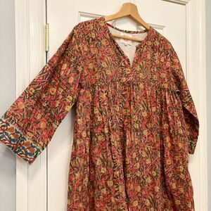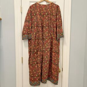 Victoria Dunn Block Print Flroal Dress Caftan Size XS