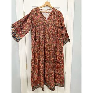 Victoria Dunn Block Print Flroal MIDI Dress Caftan Size XS