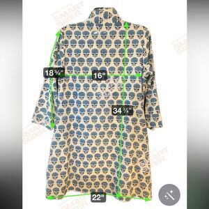 Victoria Dunn Sz M Blue White Feminine Boho Cotton Flowy Statement Pocket Dress