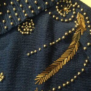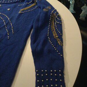 Victoria Harbour Blue n Gold Ladies Bedazzled sweater Vintage size: L