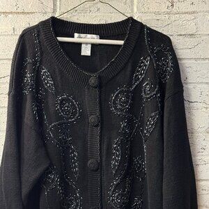 Victoria Harbour Vintage Black Beaded Cardigan Sweater Women’s Medium