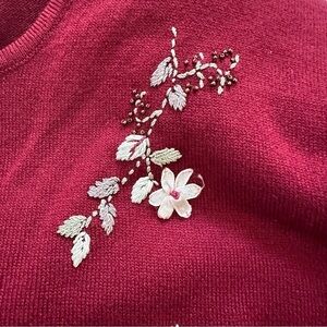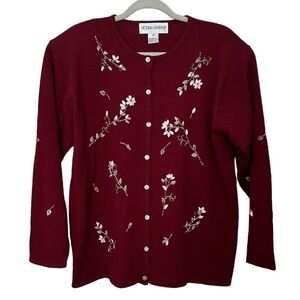Victoria Harbour Vtg Cardigan Burgundy Beaded Cottagecore Granny Embroidery Sz M