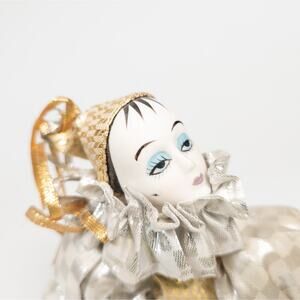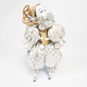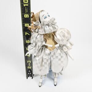 Victoria Impex Jester Harlequin Porcelain Face Hand Legs Doll White Checker