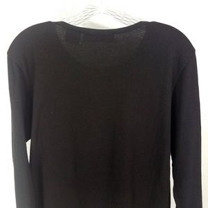 Victoria Jones Black Christmas Reindeer Large Scoop Neck Long Sleeve Shirt Top