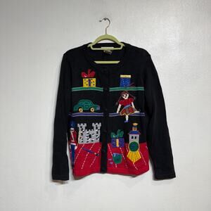 Victoria Jones Black Embellished Embroidered Christmas Vintage Cardigan Sz S