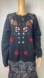 Stylish black sweater featuring vibrant red and white embroidery. Perfect for adding a festive touch to your wardrobe over the holidays. Smoke free home. Weighs 2 lbs for shipping.