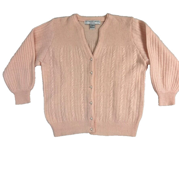 Victoria Jones Cardigan Sweater PM Pink Lambswool Angora Rabbit Hair Button Up