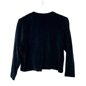 Victoria Jones Christmas Cardigan Sweater Black Velour Applique Holiday