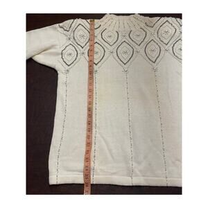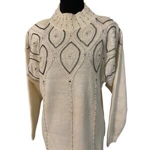 Beautiful vintage Victoria Jones cream sweater featuring intricate beaded and pearl detailing.