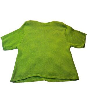 This Victoria Jones cardigan is a vibrant blend of ramie and cotton, offering a comfortable and stylish fit. Its bright green hue is adorned with delicate floral embroidery, exuding an air of playful elegance. The cardigan, crafted in China, is designed with short sleeves and a button-down front, providing versatility for various occasions. A delightful addition to any wardrobe, it encapsulates the charm of contemporary fashion with a touch of vintage flair.