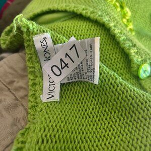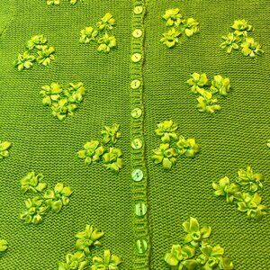 Victoria Jones Green Floral Embroidered Cardigan Sweater L Ramie Cotton Blend