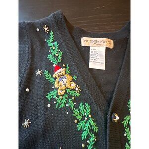 Victoria Jones Petite Holiday Sweater Vest Embroidered Black PL Vintage 80s