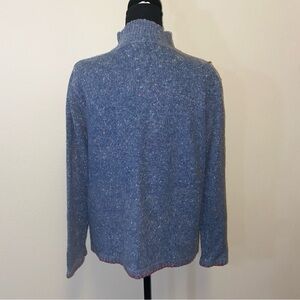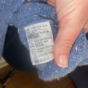 Embrace the holiday spirit with this charming blue sweater featuring delightful festive motifs. Perfect for adding a touch of whimsy to your winter wardrobe.