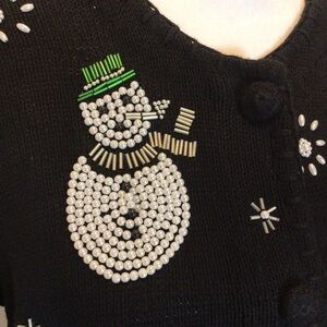 Victoria Jones Snowman Christmas Beaded Long Sleeve Button Cardigan Sweater Size Medium. Excellent condition! From smoke free home.