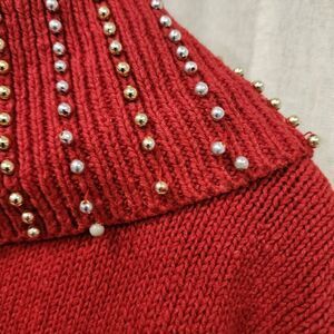 Victoria Jones Ugly Christmas/Holiday Sweater. cowl neck. Knit. beaded.