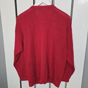 Good Condition, Victoria's Jones Red Snowman Cardigan Sweater, Covered Buttons, Pearl Snowmen, Shoulder Pads, Size Medium